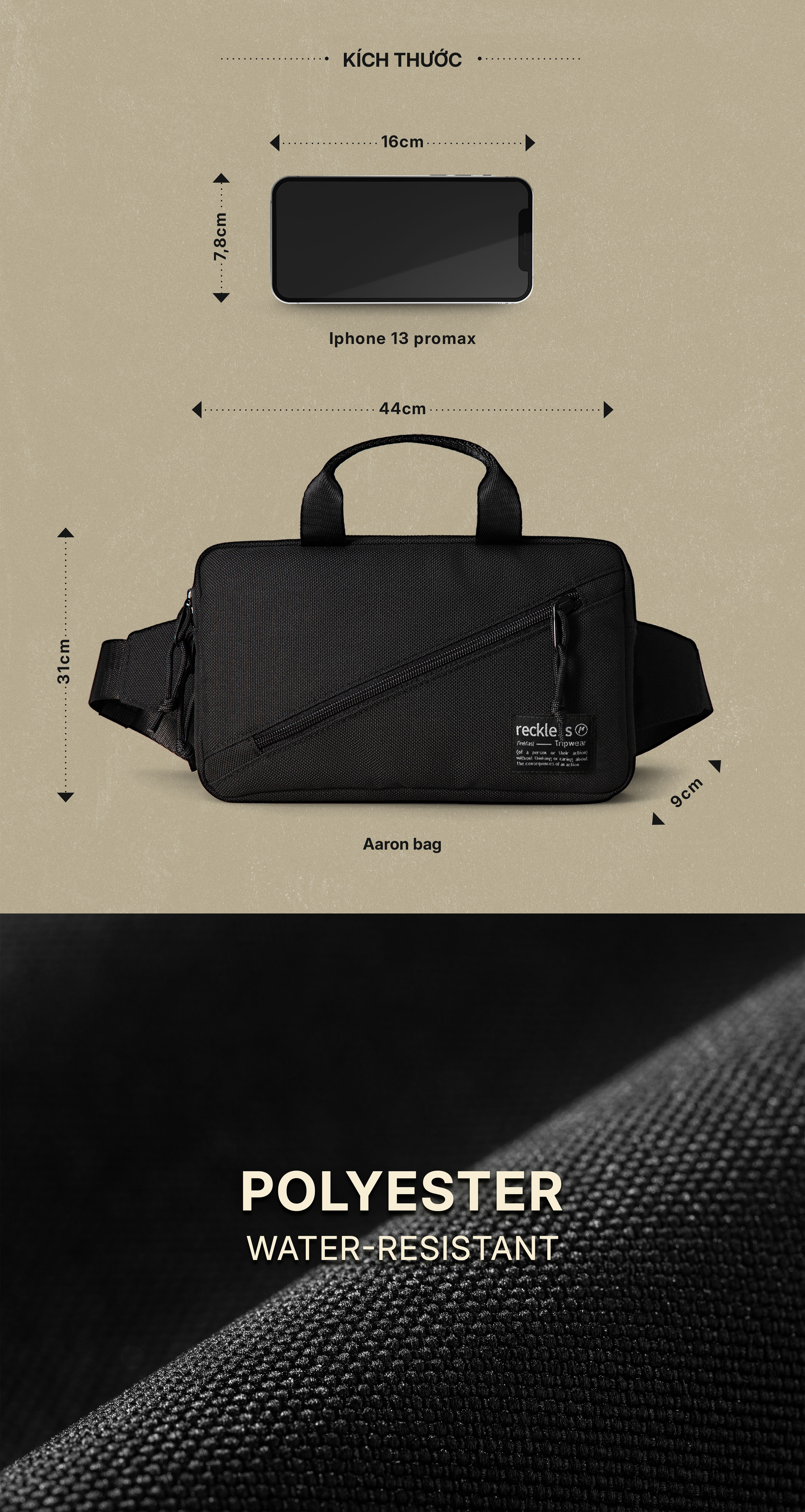 Túi Arron Waist Bag là chiếc túi đeo hông với kích thước lớn và nhiều ngăn phụ để bạn mang theo nhiều vật dụng. Ngoài ra, túi có 2 chế độ đeo linh hoạt theo nhu cầu: đeo hông & đeo chéo